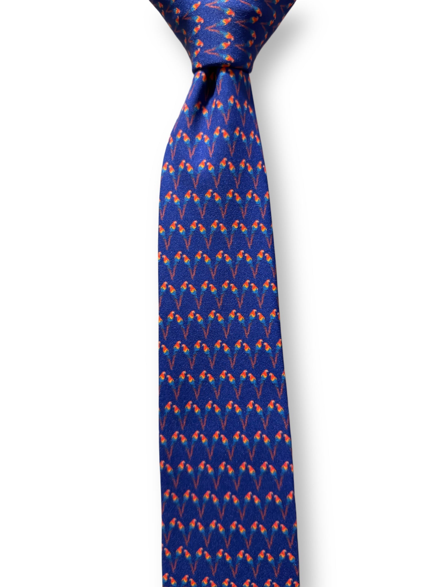 Nuestra corbata Arara es divertida, llamativa y llena de vida, perfecta para quienes quieren destacar con elegancia sin complicaciones.