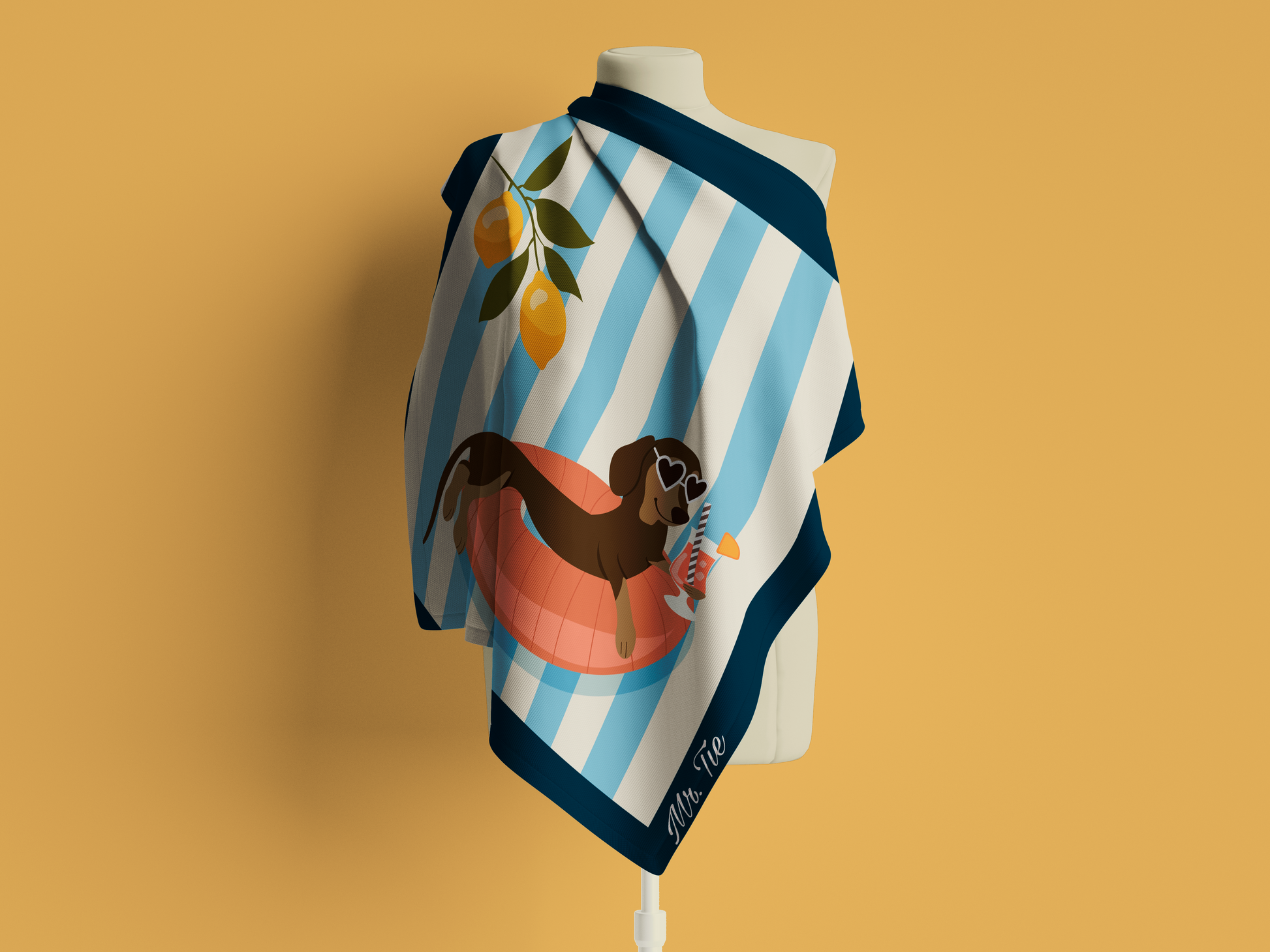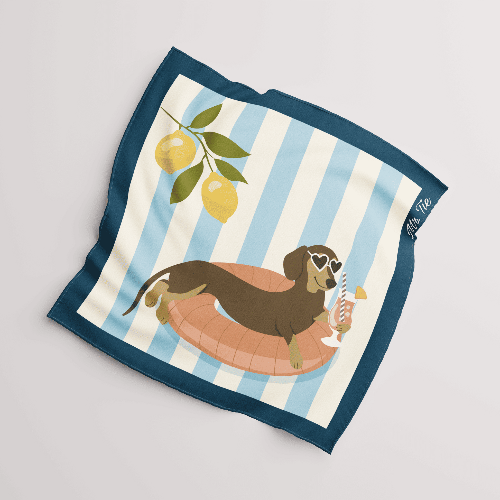 Cada detalle del perro salchicha ha sido plasmado con ternura y sofisticación, creando un patrón que es a la vez juguetón y elegantísimo.
