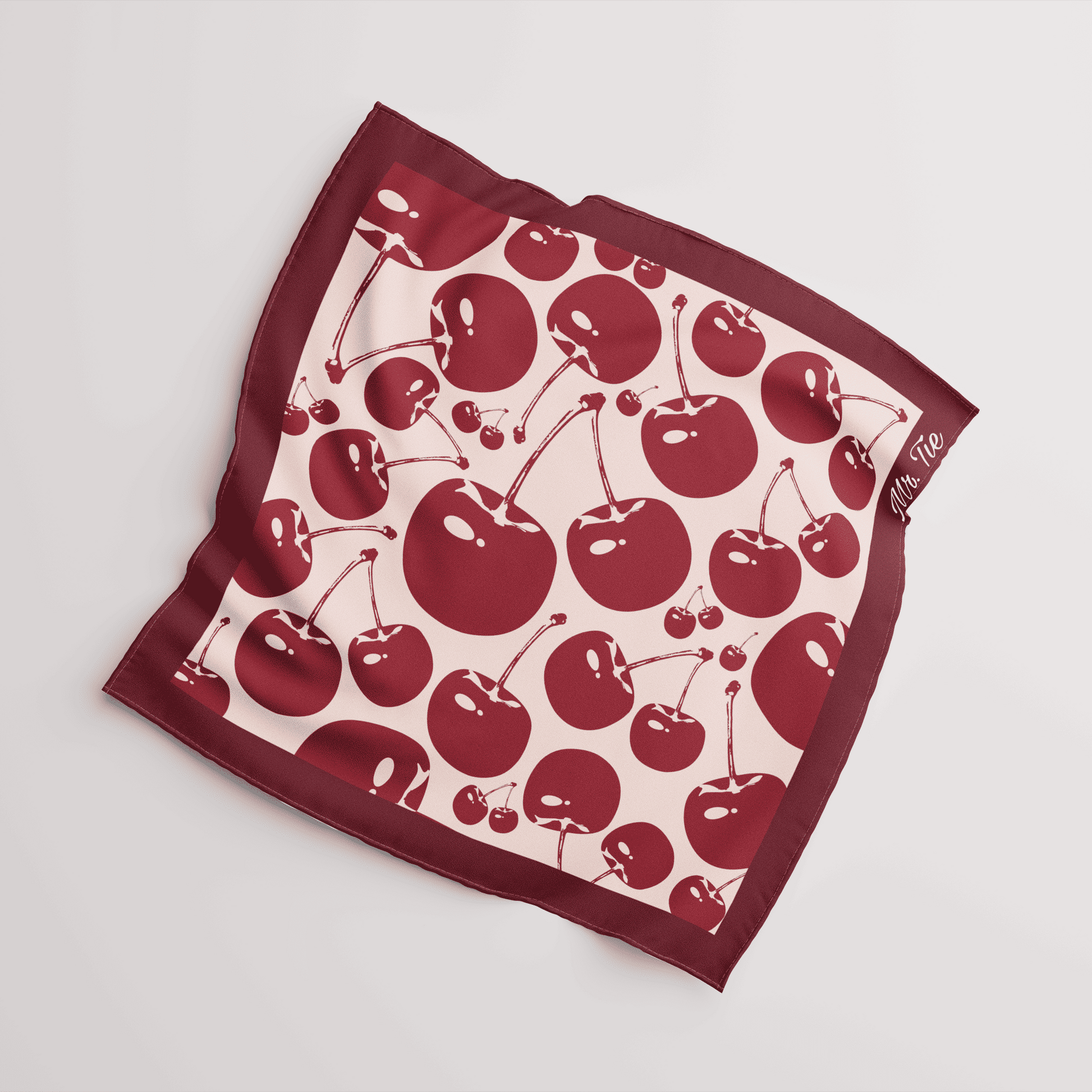 Las cerezas rojas contrastan con delicadeza, creando un diseño que irradia frescura y un encanto atemporal.