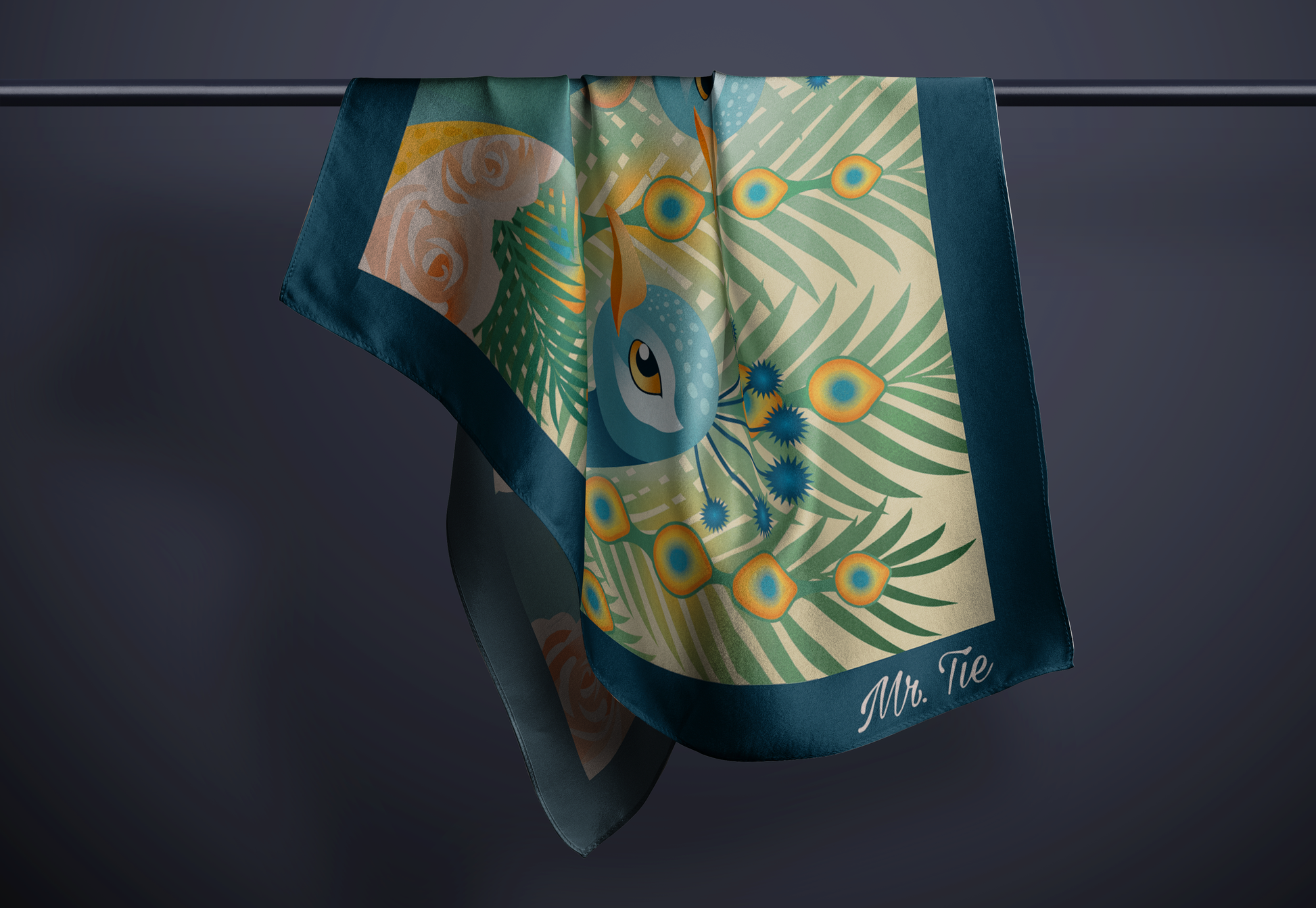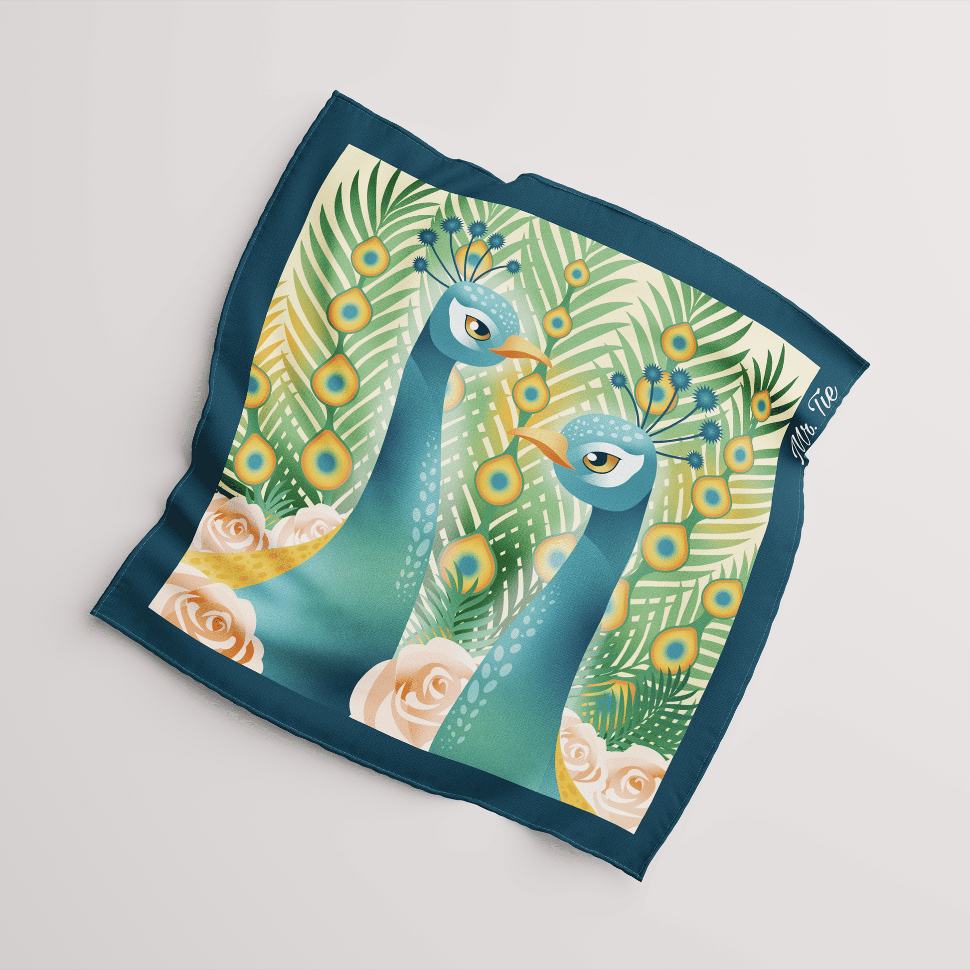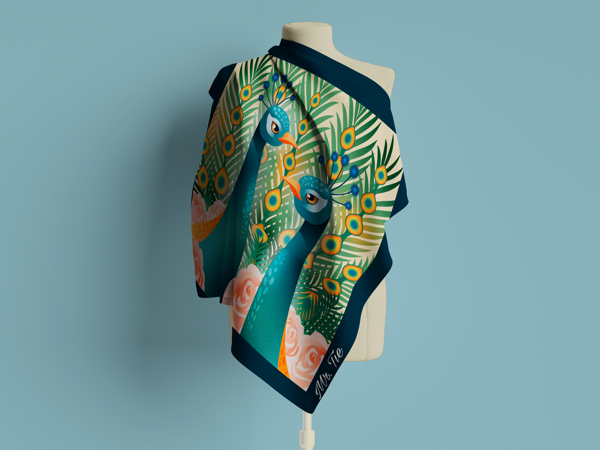 Inspirada en el porte majestuoso y el opulento plumaje del pavo real, la pañoleta Real es la máxima expresión de la elegancia.