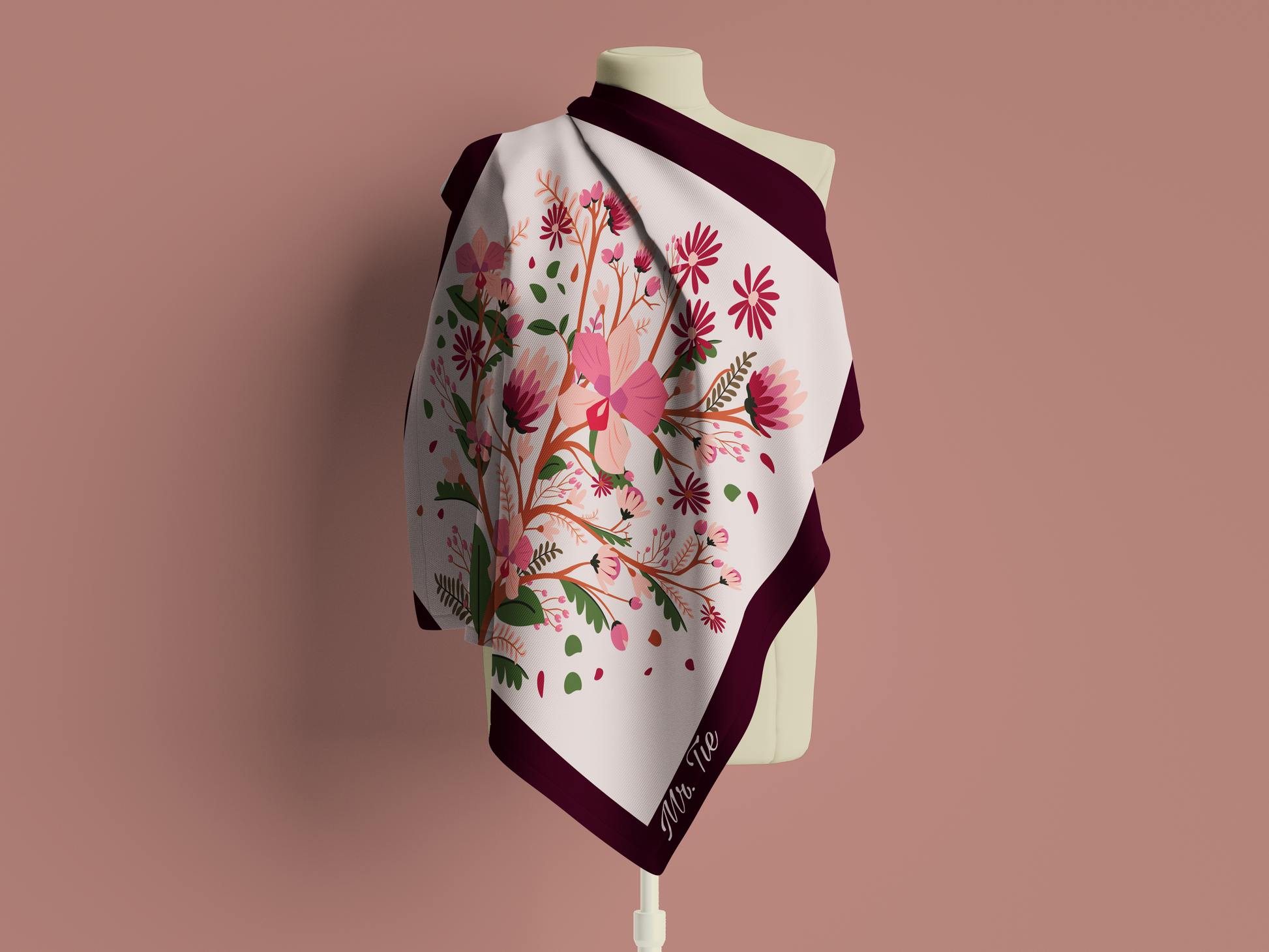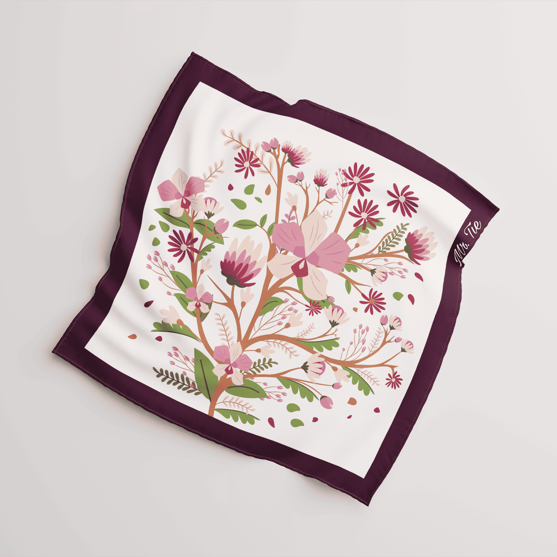La pañoleta Sakura rinde homenaje a la delicadeza y la belleza efímera de la floración de cerezo, símbolo universal de gracia y renovación.
